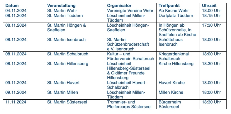 St. Martin 2024 - alle Termine im Selfkant