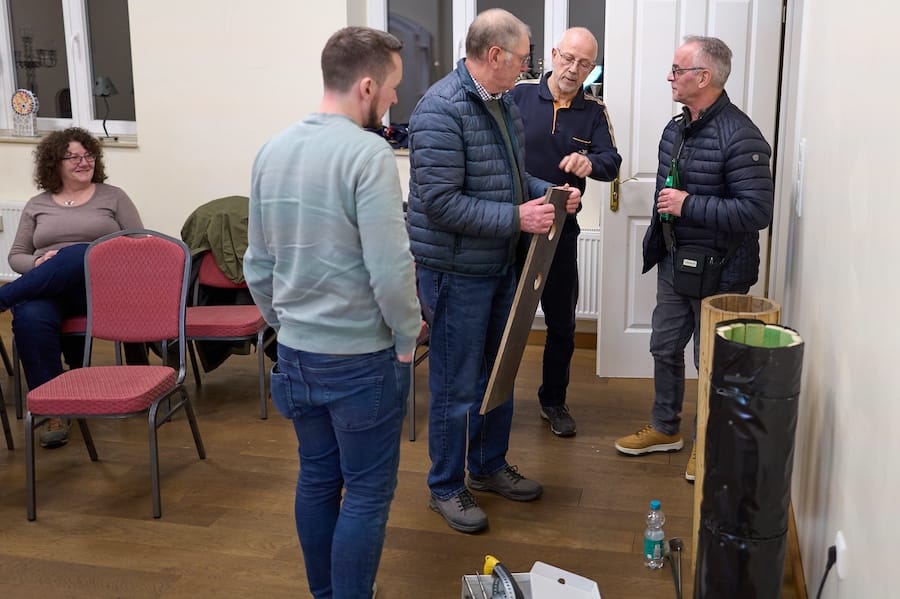 Sofort waren die Handwerker beim Austausch bzgl. Brutröhrenbau unter sich.