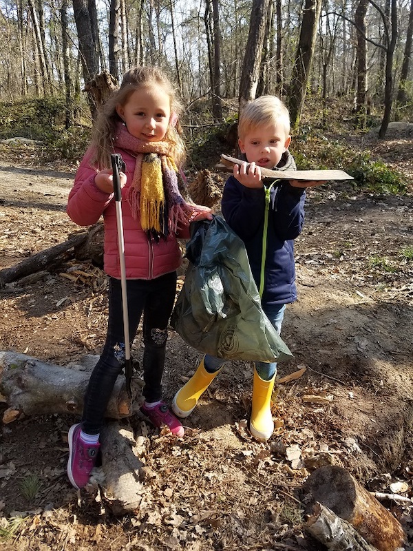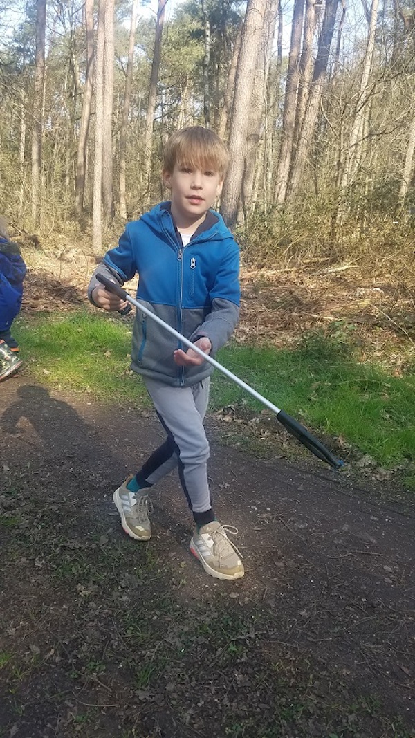 Eine Herzensangelegenheit der Kinder war es auch wieder, den Wald von Müll zu befreien. So sammelten die Kinder fleißig mit den mitgebrachten Müllzangen und Handschuhen den Müll auf.