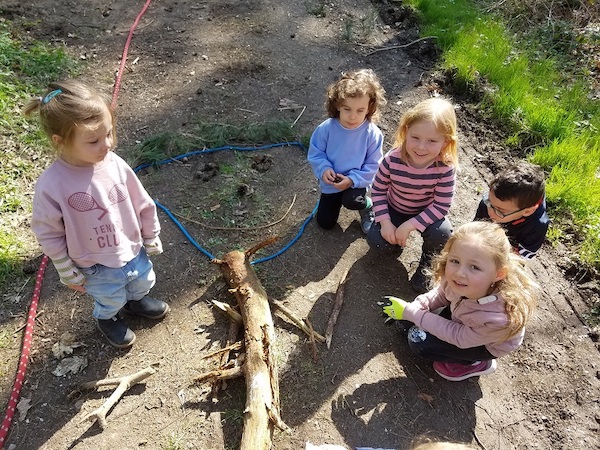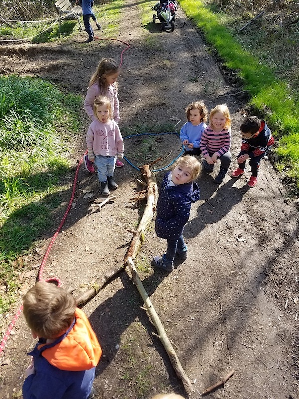 Fragen über Fragen, die wir im Verlaufe des Waldtages mit den Kindern klären konnten, lauschen, beobachten und spielen. Die Entdeckungs- und Spielfreude der Kinder kannte kaum Grenzen. Wir nutzten sie, um mit möglichst allen Sinnen den Geheimnissen des Waldes auf die Spur zu kommen. So wurde der Wald mit allen Sinnen erlebt. Die Zeit bis zum Mittag wurde gruppenintern genutzt, um die Umgebung mit all ihren Eindrücken und Spuren zu entdecken.