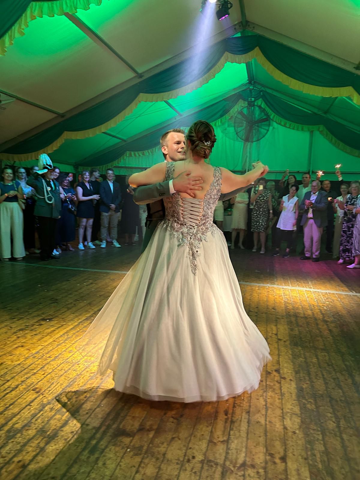 Am Abend wurde dann das Königspaar samt Ihrem großen Gefolge durch das Trommler- und Pfeiferkorps sowie den Offizieren der Bruderschaft zum Königsball abgeholt. Der Höhepunkt des Abends war schließlich der Königswalzer, den das Königspaar mit Bravour gemeistert hat.