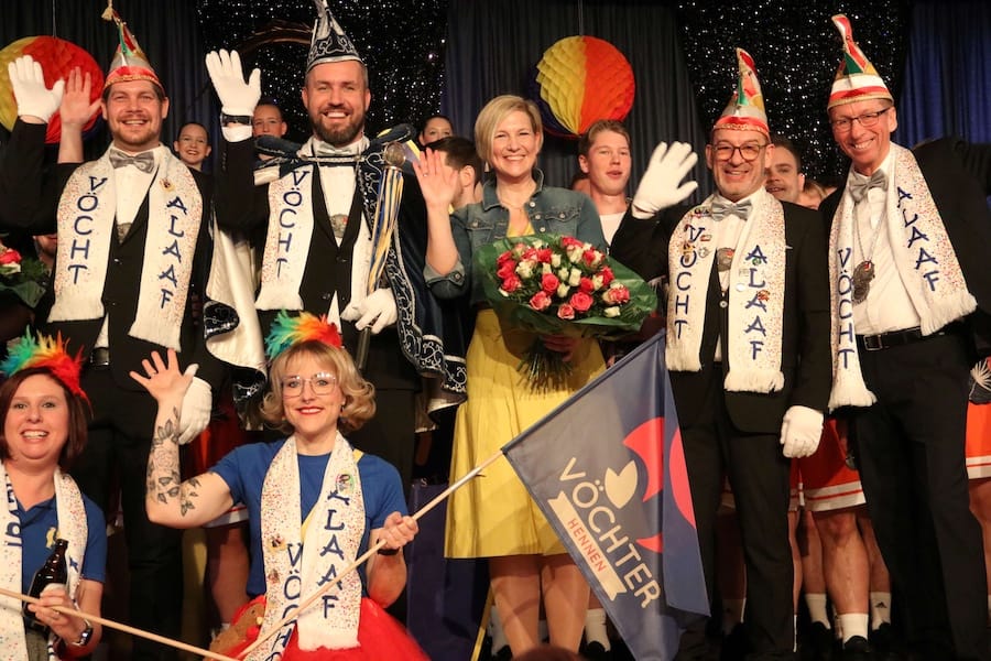 Uwe Huchel Ein karnevalistischer Urknall am Sonntag in Waldfeucht. Die Interessengemeinschaft „Vöchter Schoerskaar Schörjer“ proklamierte im bunten Narrentempel Bürgertreff seine Tollitäten mit Prinz Thorsten I. und seiner Venetia Sarah (Milosch).