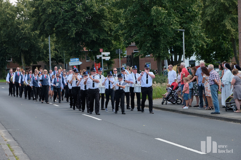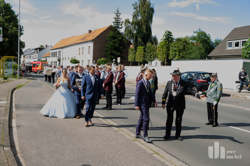 Am gestrigen Samstag begann die Kirmes um 16:45 Uhr mit dem Abholen der Majestäten am Königshaus Suestrastr. 23 an. Nico bekam das Königssilber überreicht und anschließend zog man gemeinsam zur Messe. Im Anschluss an die Messe fand ein kleiner Umzug statt.