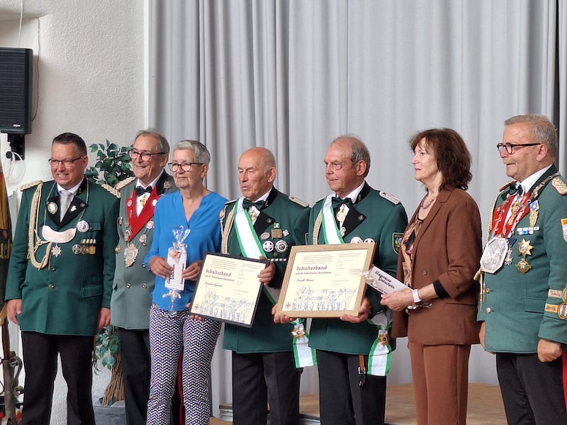 Am Sonntag fanden ab 11 Uhr wichtige Ehrungen im Bürgerhaus Schalbruch statt. Der Diözesansbundesmeister hatte sich angekündigt verlieh zwei Schützenbrüdern das Schulterband zum St. Sebastianus Ehrenkreuz. Weiter wurden 2 Damen mit dem Silbernen Verdienstkreuz für Frauen und 5 Männer mit dem Silbernen Verdienstkreuz vom Dekanatsbundesmeister ausgezeichnet.