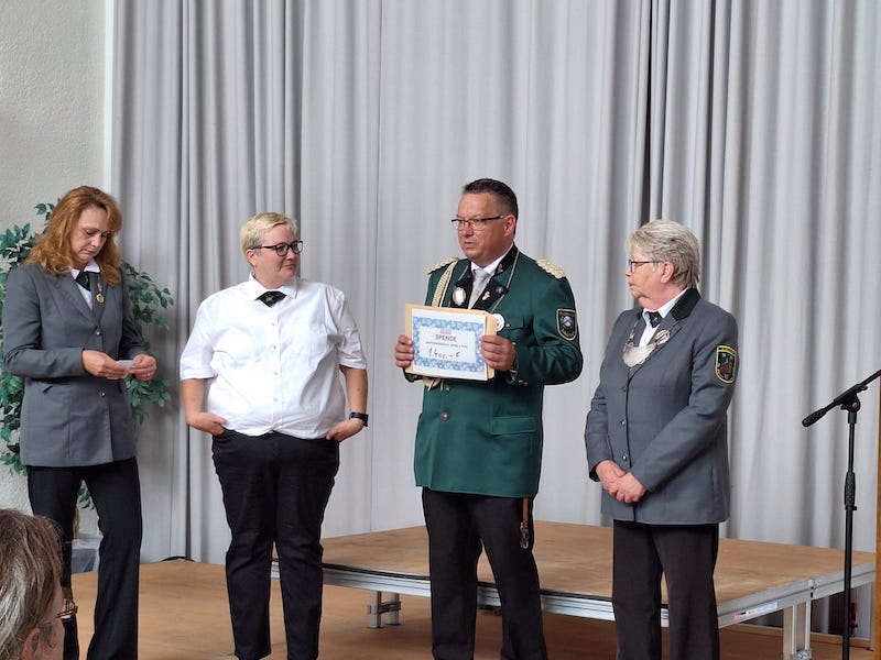 Dann gab es noch eine Überraschung - Präsident Ralf Knarren hat von seinen Schützenschwestern durch Spendensammlung einen Scheck in Höhe von 1400 Euro für die Schützenjugend bekommen.