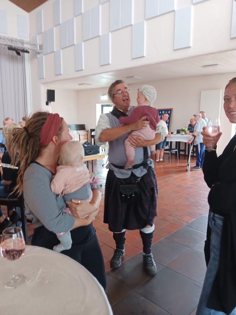 Bei kühlen Getränken und Süßem vom Kuchenbuffet konnten sich dann die Kirmesbesucher erfreuen. Für die Kinder wurde eine Hüpfburg bestellt, Megaseifenblasen und ein Kletterturm aus Strohballen sorgten für mächtigen Spaß bei den Kids.