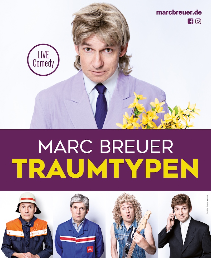 Nur wenige Tage später – am 23. November gibt es ein Wiedersehen mit Marc Breuer und seinen „Traumtypen“. Der beliebte Comedian bringt in seinem Soloprogramm alle bekannten Typen der seiner 20-jährigen Karriere mit. Es gibt u.a. ein Wiedersehen mit Richard Borowka, Feuerwehr-Löschmeister Josef Jackels und wenn Manni der Frontmann der beliebten Hobby-Rock-Band „Top Sound“ loslegt, wird selbst Mick Jagger blass. Dieses mitreißende Comedy-Event findet in der Westzipfelhalle Tüddern (In der Fummer 9, Selfkant-Tüddern) um 20:00 Uhr statt. Einlass ist ab 19:00 Uhr. Der Eintritt für dieses Event beträgt 20 € bei ebenfalls freier Sitzwahl.