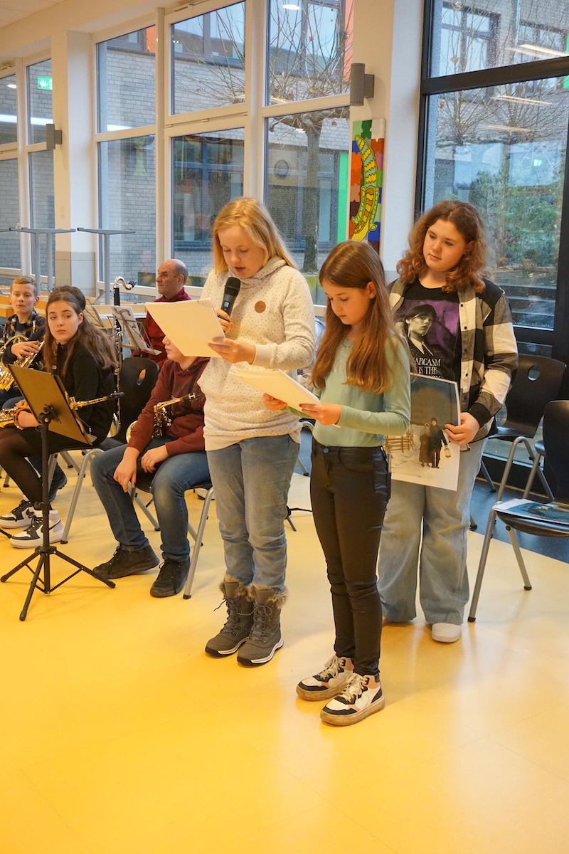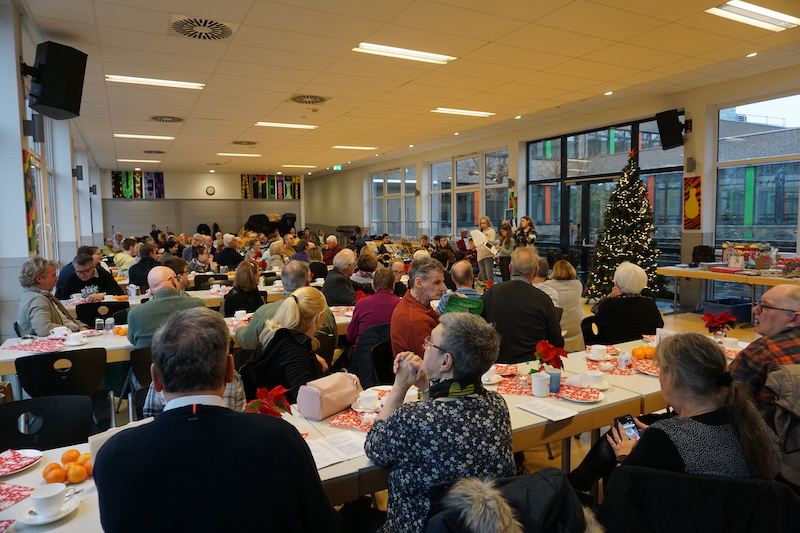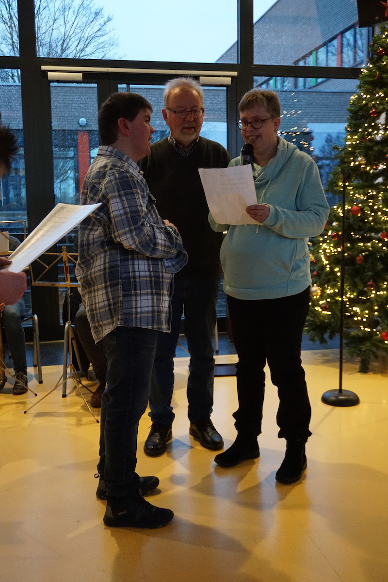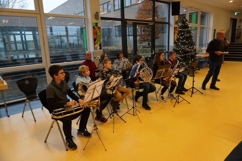 Der Förderverein für Menschen mit geistig-körperlich Behinderung im Selfkant hatte seine Betreuungsgruppe zur vorweihnachtlichen Feier in die festlich geschmückte Mensa der Gesamtschule Gangelt-Selfkant eingeladen. Das Programm wurde mit Beiträgen der Gesamtschule eröffnet. Unter der Leitung ihres Lehrers Dr. Peter Poot spielte ein Bläserensemble Weihnachtslieder. 3 Schülerinnen aus der Unterstufe trugen eine moderne Fassung der Weihnachtsgeschichte vor, wobei die Textpassagen zusätzlich durch Bilder ergänzt wurden.