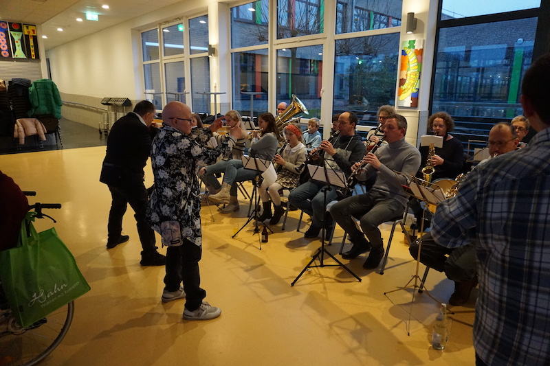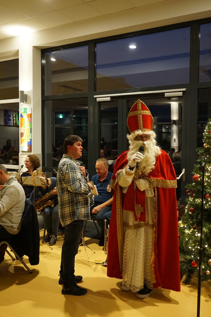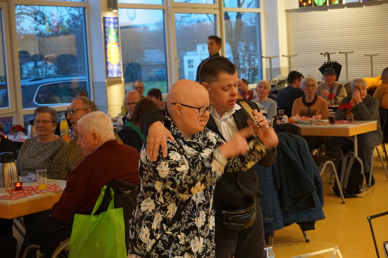 Nach der Kaffeetafel mit Stollen und Weihnachtsgebäck lauschten die Gäste Gedichten und Liedern, die von Menschen mit Behinderung vorgetragen wurden. Dann übernahm eine Bläsergruppe des Musikvereins St. Gregorius Saeffelen die musikalische Unterhaltung und verkürzte mit weihnachtlichen Weisen das Warten auf den heiligen Mann. Bei Einbruch der Dunkelheit erschien schließlich schwer bepackt der Nikolaus und überreichte jedem Mitglied aus der Betreuungsgruppe ein persönliches Geschenk.