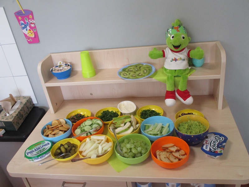 Durch die Kooperation mit der AOK ist Jolinchen ein festes Mitglied unserer Einrichtung geworden und begleitet die Kinder regelmäßig in den Bereichen „gesunde Ernährung“ , „Bewegung“ und „Wohlbefinden“.
