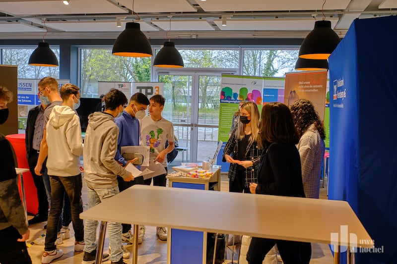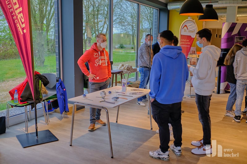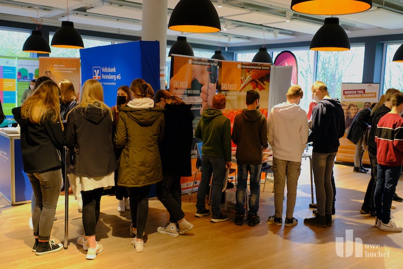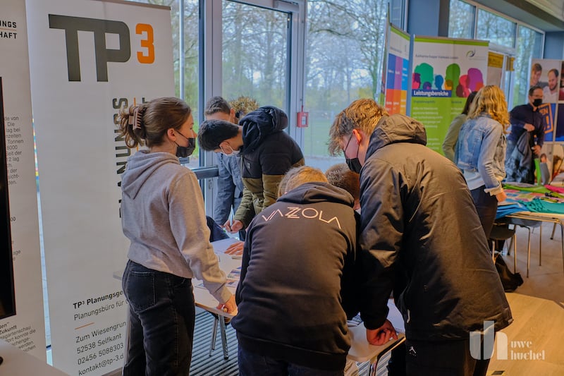 Heute fand in der Mensa der Gesamtschule in Gangelt das "Kontaktikum" der Jahrgangsstufen 8-10 statt. Der Gewerbeverband Selfkant e.V. und die Gewerbegemeinschaft Gangelt e.V. haben diese Ausbildungsbörse in Kooperation mit der Gesamtschule umgesetzt. Insgesamt waren 21 Unternehmen vor Ort und informierten über ihre Ausbildungsmöglichkeiten. So konnten sich ca. 400 Schüler eine Meinung bilden. Seitens der Schule zeichneten sich für die Organisation Dr. Frenken und Herr Preuß verantwortlich, welcher auch die Begrüßungsworte sprach. Edwin Otten und die Bürgermeister aus Gangelt und dem Selfkant würdigten ebenfalls diese Initiative, schließlich ist die Ausbildung der Schlüssel zur Teilhabe an der Gesellschaft. Unternehmen, die ihren eigenen Nachwuchs ausbilden, sind besser gegen den Fachkräftemangel gewappnet. Begleiten Sie uns auf einem Rundgang .....