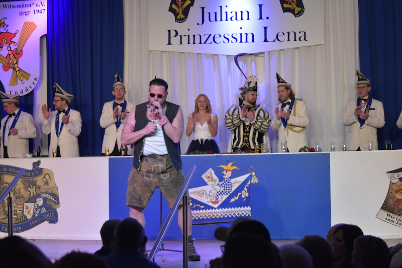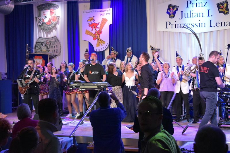 Gianluca Franken war wieder einmal mit einem Gesangsauftritt dabei und sorgte für prächtige Stimmung. Einen Streifzug durch die Schlagermusik machte die Tüdderner Playbackgruppe. Das Finale einer tollen Sitzung gestaltete die Band Hat-Wat. Musikalisch begleitet wurde die Sitzung die Sitzungskapelle „De Büsch Band“.