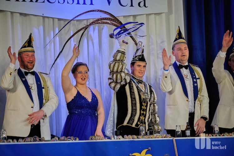 Als erste Veranstaltung im neuen Jahr fand gestern die Große Proklamationssitzung der Witsemänn statt. Das sechsstündige Programm begann mit der Verabschiedung der Tollitäten der Session 2019/2020, Prinz Michael I. und Prinzessin Nicole mit ihren Adjutanten Florian und Markus. Danach war die Bühne frei für das neue Prinzenpaar der Witsemänn, Prinz Pascal I. und Prinzessin Vera mit ihren Adjutanten Florian und Chris. Sie wurden von ihren Freunden und dem SC Selfkant auf die Bühne begleitet.