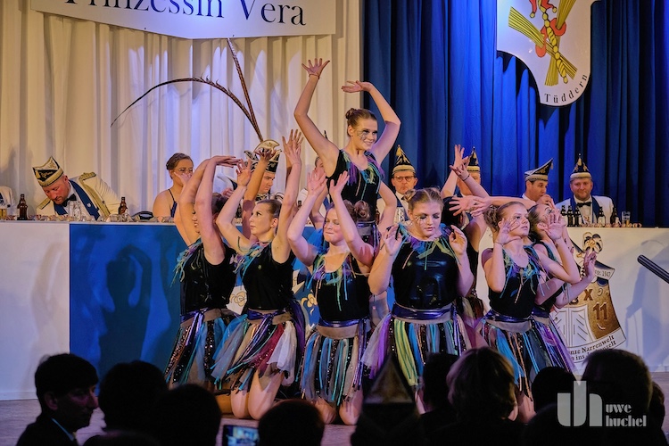 Bei den Dancing Kings stand das Thema Selfkant Safari auf der Agenda. Ebenfalls waren die Showtanzgruppe Avanti und das Männerballett Resterampe sowie eine Abordnung des SKV mit von der Partie´. Prinzessin Vera tanzt bei Avanti und trainiert die Resterampe. Der Freundeskreis und die Mannschaftskameraden/-innen überraschten das Prinzenpaar mit einem Tanz. Gianluca Franken war wieder einmal mit einem Gesangauftritt dabei. Einen Streifzug durch die Welt der Partymusik machte die Tüdderner Playbackgruppe. Für karnevalistische Stimmung haben die neuformierte Gruppe „Hat-Wat“ und die in Tüddern bekannte Band Rabatz gesorgt. Musikalisch begleitet wurde die Sitzung durch De Büsch Band. Wie in den vergangenen Jahren war die Proklamationssitzung auch in diesem Jahr ausverkauft.