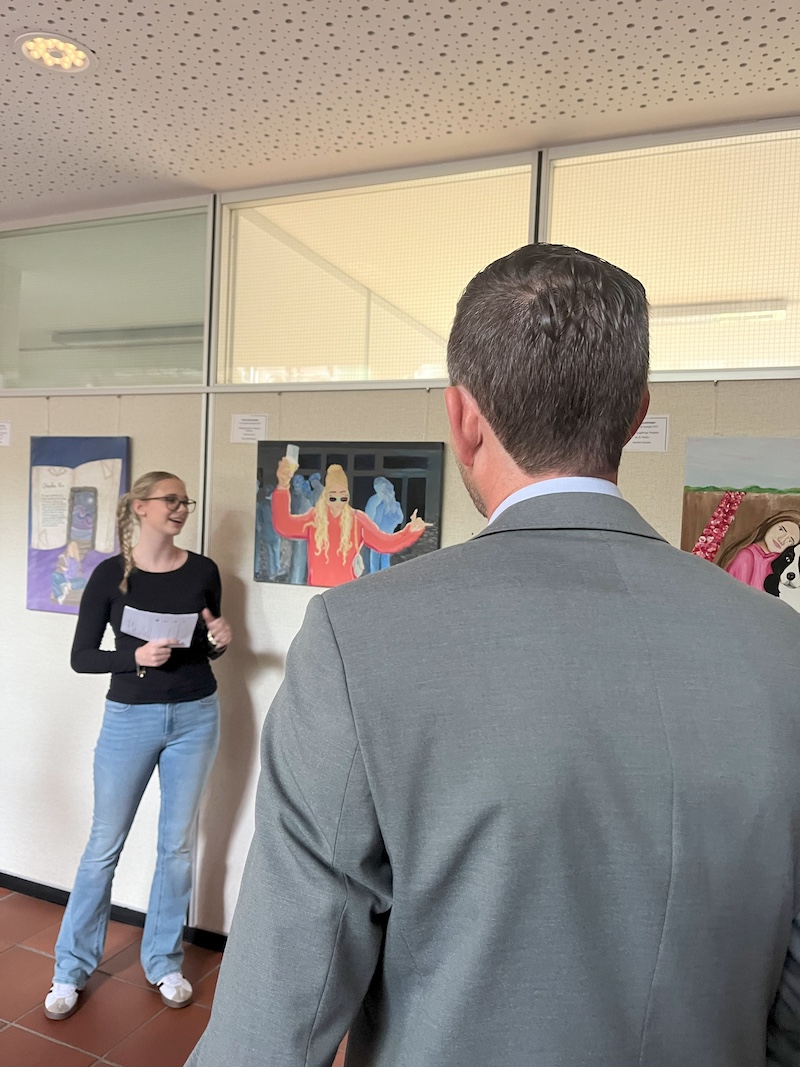 Die Ausstellung ist das Ergebnis einer gelungenen Kooperation zwischen der Gesamtschule Gangelt-Selfkant und der Gemeinde Gangelt. Bereits zum vierten Mal stellte Bürgermeister Guido Willems das Rathaus als öffentlichen Ausstellungsort zur Verfügung. In seiner Begrüßung zeigte sich Willems beeindruckt von der Kreativität und dem Mut der jungen Künstler:innen, persönliche Themen so offen darzustellen und würdigte das Engagement der Beteiligten. Auch Schulleiter Robert Roßmüller fand in einem kurzen Vortrag wertschätzende Worte und lobte den besonderen Stellenwert von Kunstprojekten dieser Art für die Persönlichkeitsentwicklung der Schülerinnen und Schüler.